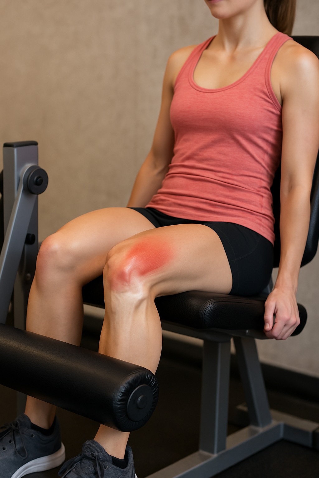 Esse aparelho trabalha diretamente o quadríceps, o músculo da frente da coxa que tem um papel fundamental na proteção do joelho. Quando o quadríceps está fortalecido, ele ajuda a estabilizar a patela (rótula) e evita sobrecarga nos ligamentos. O ideal é fazer o movimento de forma lenta e controlada, sem esticar a perna de forma brusca. Quem já teve dor ou lesão no joelho deve usar cargas leves e priorizar a execução correta.